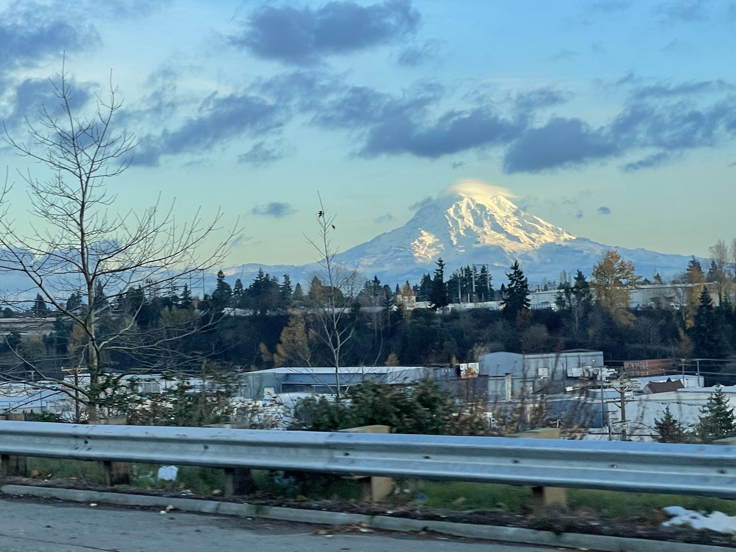 The drive took me around the outskirts of Olympic National park and if I had more time, I’m sure I could have spent days exploring that area. It’s a massive area of mostly unpopulated areas. The views were spectacular as I went up and down narrow passes and mountain highways towards Tacoma. I went through a few small towns but mostly it was pretty desolate which I liked. I hadn’t really scoped out the route on GPS before I punched it in. I was just driving to see what I’d find along the way. I came down this fairly large mountain pass and onto a huge bridge where a sign read “Tacoma Narrows Bridge” and I thought that was pretty cool. Every engineering student around the world likely knows about the ill fated Tacoma Narrows Bridge that fell down due to hitting resonance from wind loading back in the 40s. Anyway the new bridge has better engineering and so I made it across without issues. I also started to see the beautiful snow capped Mount Rainier rising up in the distance. Since I was making great time and basically had the rest of the afternoon and evening to kill I decided I’d drive towards it until it got dark. I took pictures from Tacoma thinking I’d probably not get a better picture but I drove on towards this beacon of exploration that has also been on my bucket list for decades. I always wanted to see it with my own eyes. You can see Rainier from so far away (something like 60 miles on a day like I had) that once you start driving towards it, it’s hard to comprehend how big it really is. I continued to get closer occasionally stopping to take a better picture thinking surely this will be the last opportunity I’d have.